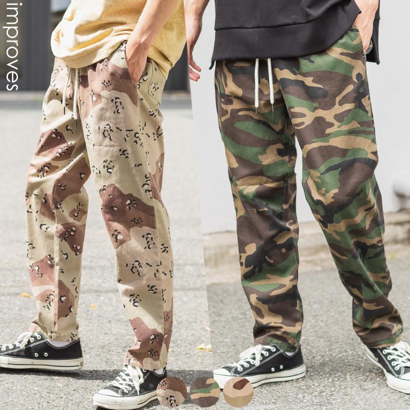 楽天市場 カーゴパンツ メンズ ストレッチ 迷彩柄 ワイドパンツ カーキ 迷彩パンツ チノパンツ カモフラージュ ミリタリーパンツ Improves Improves
